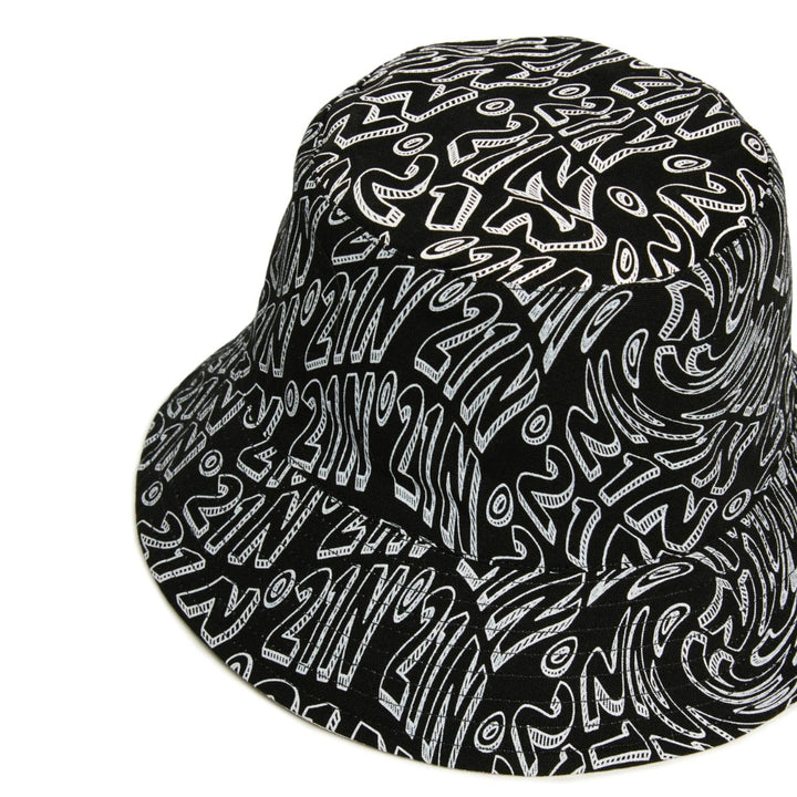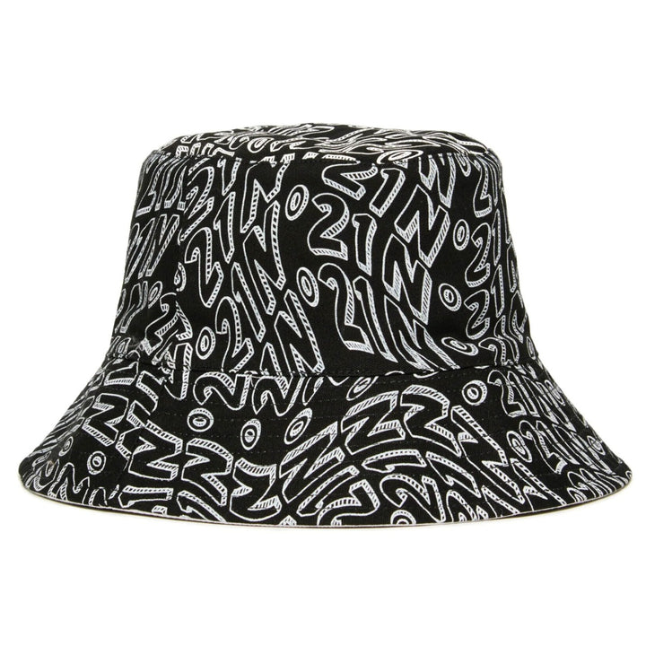 Reversible fisherman hat. Glitch all-over print on one side. Solid color with contrasting N21 Institutional logo on the other side.