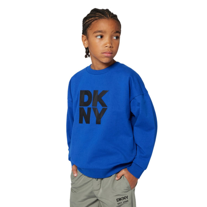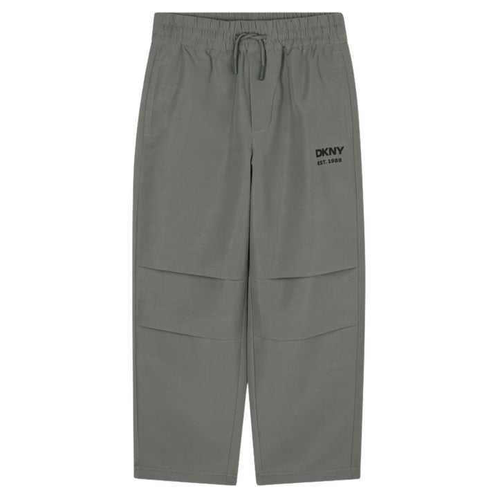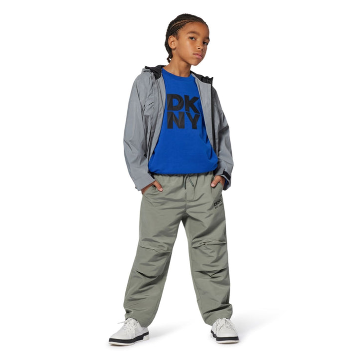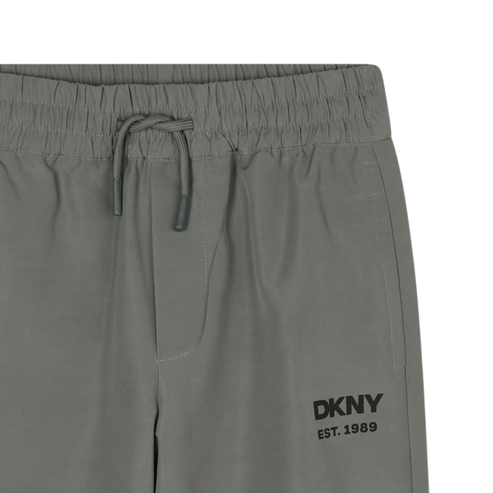Boys vivid green logo-print trousers by DKNY made from premium cotton blend fabric for comfort and flexibility, featuring a bold DKNY logo print along the leg, elasticated waistband with drawstring, and side pockets. A sporty yet stylish choice for e