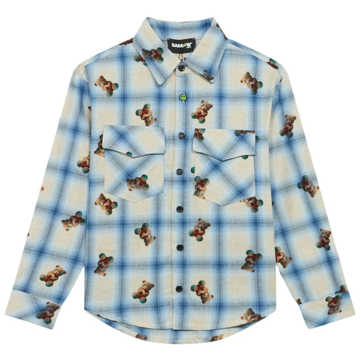Boys white and blue shirt featuring an all-over teddy bear print, crafted from soft and breathable fabric. Designed for comfort and style, this Barrow Kids piece offers a playful look perfect for casual outings and everyday wear.