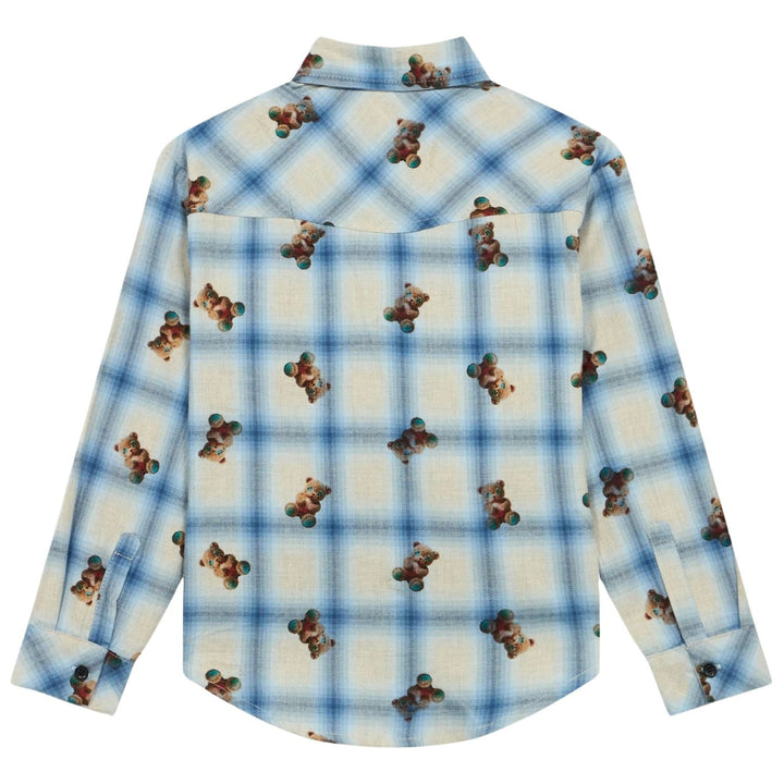 Boys White & Blue All Over Teddy Bear Print Shirts