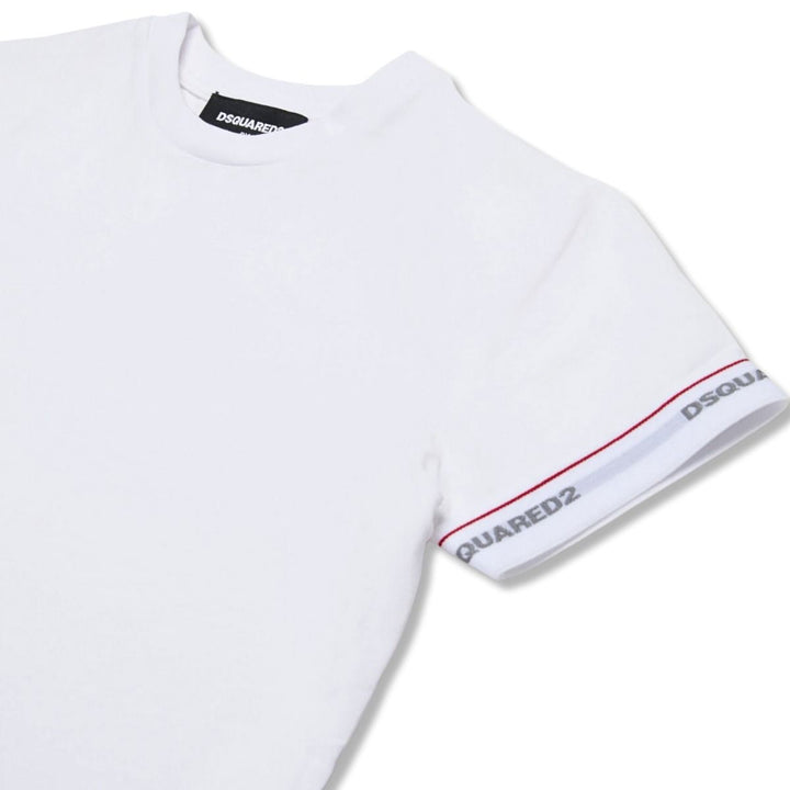 Boys White Cotton T-Shirt With Sleeve Logo