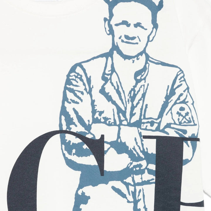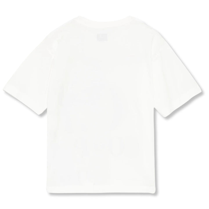 This white logo-print T-shirt from C.P. Company Kids features a bold graphic print on the front, complete with a classic crew neck and short sleeves for a casual yet standout look.