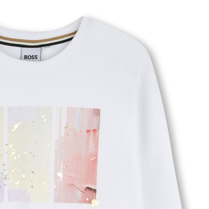 This boys white graphic print T-shirt is crafted from 100 percent cotton, giving it a soft and comfortable feel. The clean white color paired with a stylish graphic design makes it perfect for everyday wear and easy to pair with any outfit.