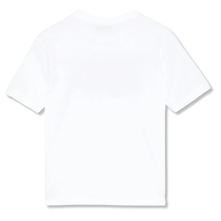 This White logo-print T-shirt from MSGM Kids is a versatile wardrobe staple with a bold edge. Made in Italy from 100% cotton, it features a classic crew neck, short sleeves, and a straight hem for a comfortable fit. Perfect for everyday wear with a touch of designer flair.