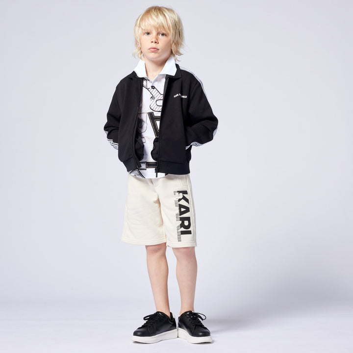 These Karl Lagerfeld Kids white shorts offer a perfect blend of comfort and style for a trendy casual look. Made from a soft and breathable fabric, they feature an elastic waistband with a drawstring for an adjustable fit.