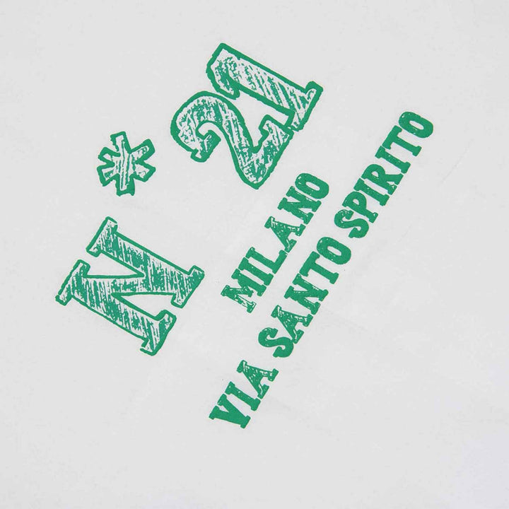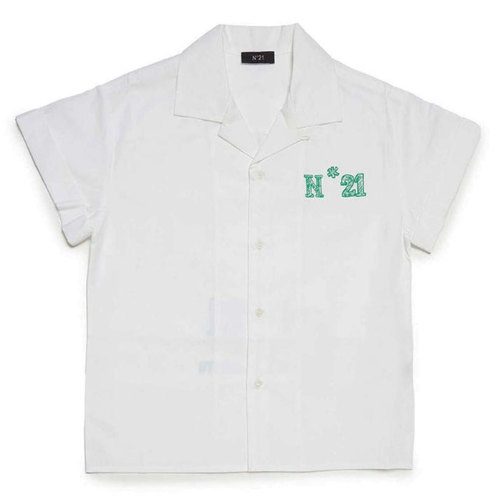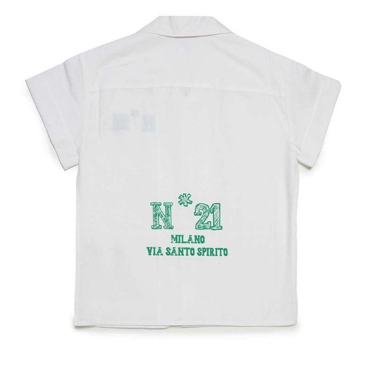 Bowling-style short-sleeved shirt in poplin. Featuring a N°21 Milano Via Santo Spirito logo branded with rubber-effect outline on both the heart-side front and back. Made of 1% cotton. A casual option that is easy to match.