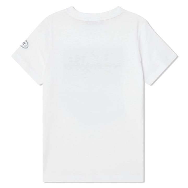 A wardrobe essential, this white T-shirt features a bold logo print on the front. Made from soft cotton, it offers breathable comfort and easy everyday style.