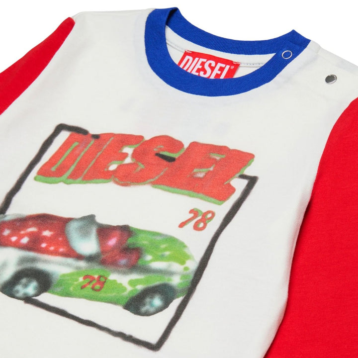 Clean and stylish this white Diesel T-shirt features a bold logo print. Perfect for casual, everyday outfits.