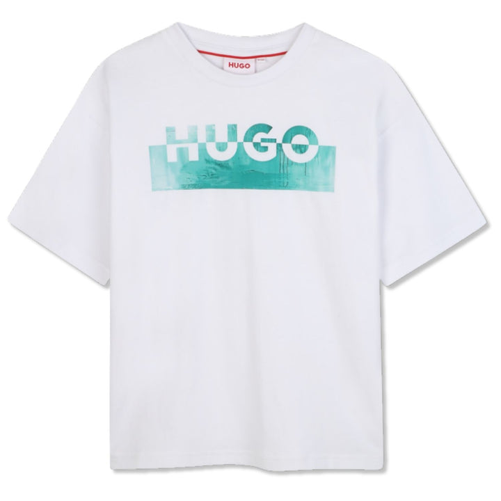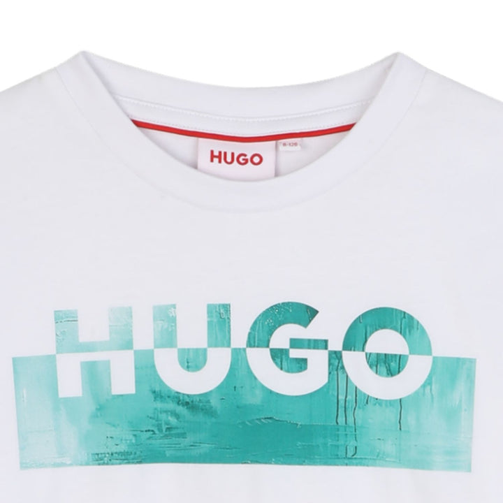 Crafted from premium cotton, this Hugo T-shirt exudes effortless luxury with its sleek logo detail and timeless design a refined essential for every stylish young boy.
