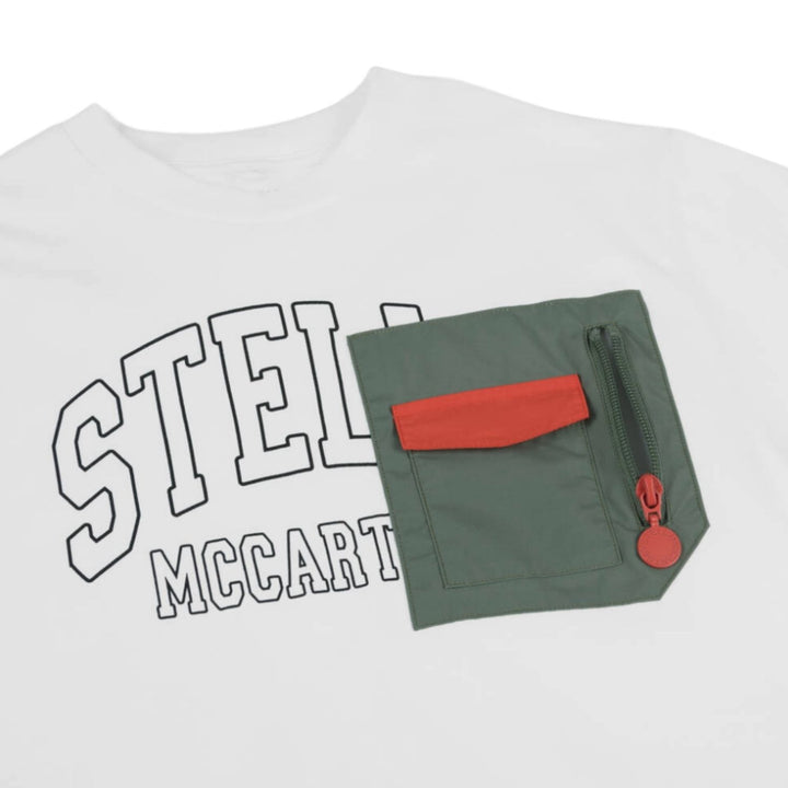 Crafted from 100% cotton, this white zip-up T-shirt features a striking logo print, offering both comfort and style for everyday wear.
