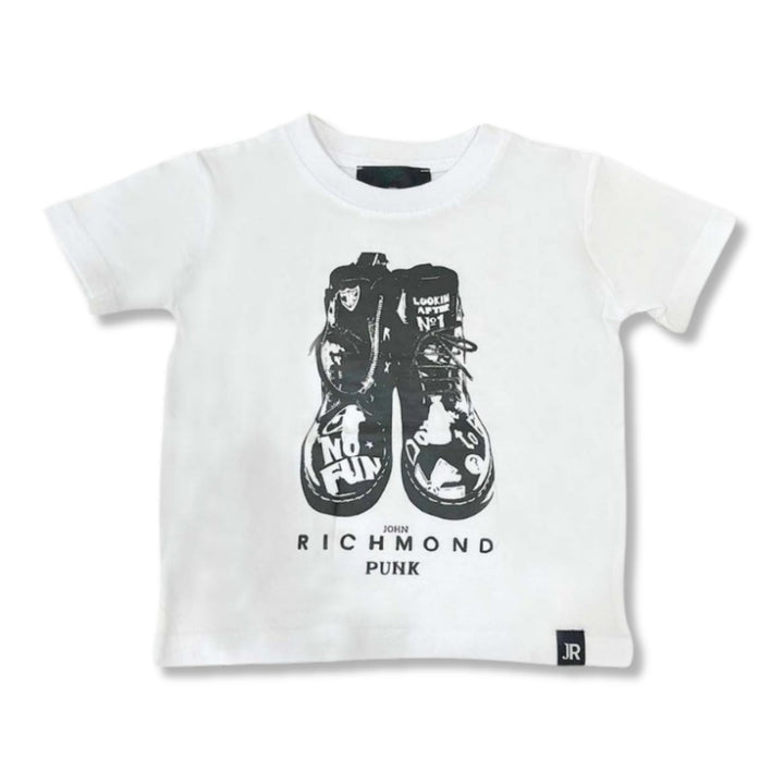 John Richmond White cotton t-shirt with punk print along with the logo.