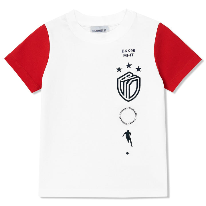 Bikkembergs Kids Short Set Sporty and stylish, this kids set includes a bold white graphic tee and comfy red shorts with a footballer print perfect for active play and everyday wear.