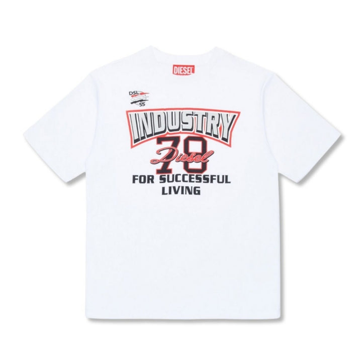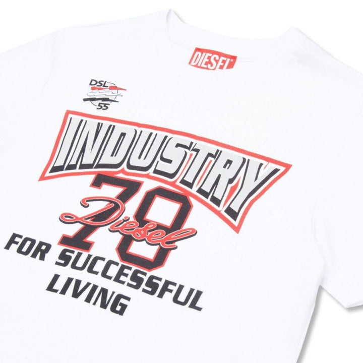 Boys White Slogan-Print Cotton T-shirt