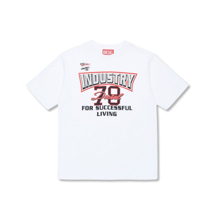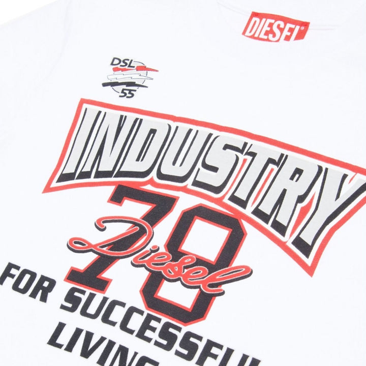 Boys White Slogan-Print Cotton T-shirt