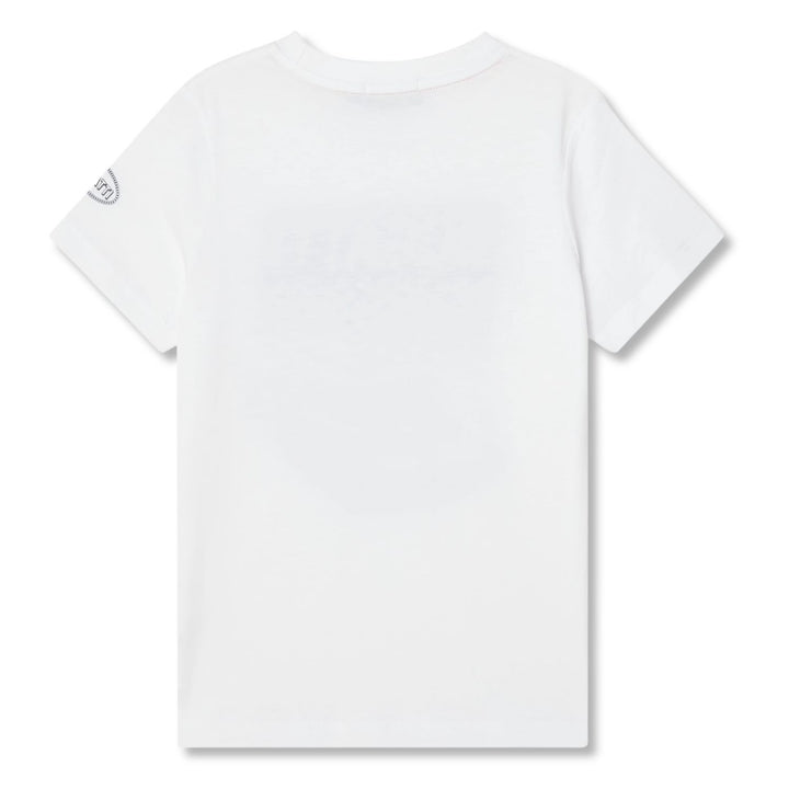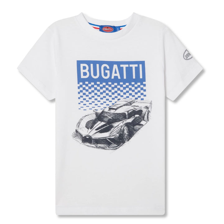 This white T-shirt features a striking sports car graphic on the front. Made from soft cotton, it combines cool style with everyday perfect comfort for young car enthusiasts.