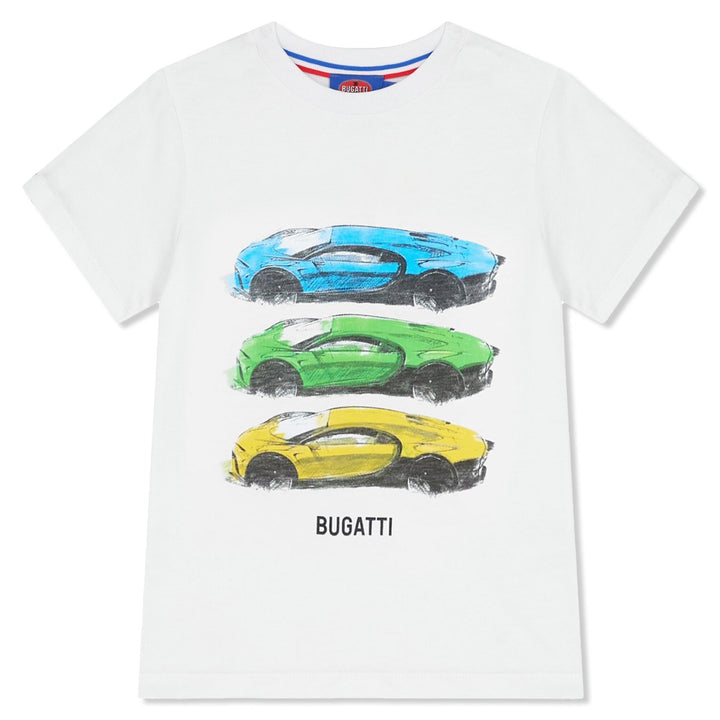Designed for young car lovers, this white T-shirt features a bold sports car print on the front. Made from soft cotton for breathable comfort and everyday wear.