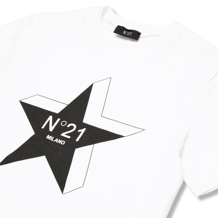 Short-sleeved crew-neck jersey T-shirt. Star with N21 Milano logo on the front. Made of 1 % cotton. An easy-to-match casual option.