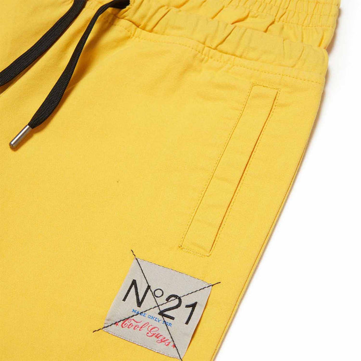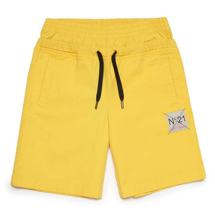 Parachute canvas short pants. Double waist with functional drawstring. Front welt pockets. Label N°21 on the front. Made of 1% cotton. A garment with a cool and lightweight fabric, ideal for summer time.