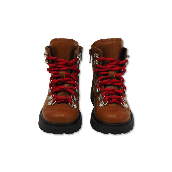 The tan brown color, red laces, silver metallic shoelace loops, and the heavy sole altogether are amplifying the style factor of this Brown Ankle Length Boots by Dsquared2. With casual attire or semi-formal attire, the boots will perfectly complement