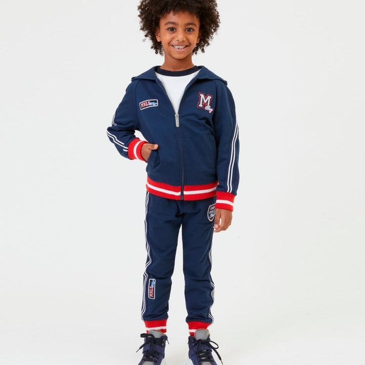 Brushed fleece joggers for Boys is by Italian designer Monnalisa.Comfortable jogger trousers in fleece fabric with side bands.