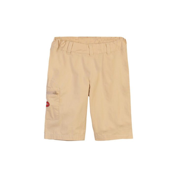 Younger boys Beige logo shorts by Bugatti Kids. Made from soft cotton, it features a logo badge on the front and logo tape on the side, it has a dual side pocket with black trims and an elasticated black waistband