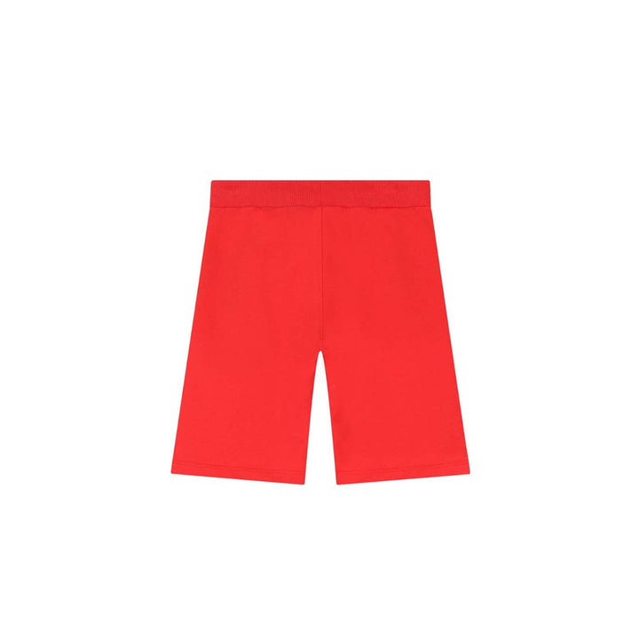 Red shorts by Bugatti Junior. Made from soft cotton jersey, it features black and white trim with the brands logo print in black. Has side pocket and finished with an elasticated waistband and white drawstring for comfortable fit.