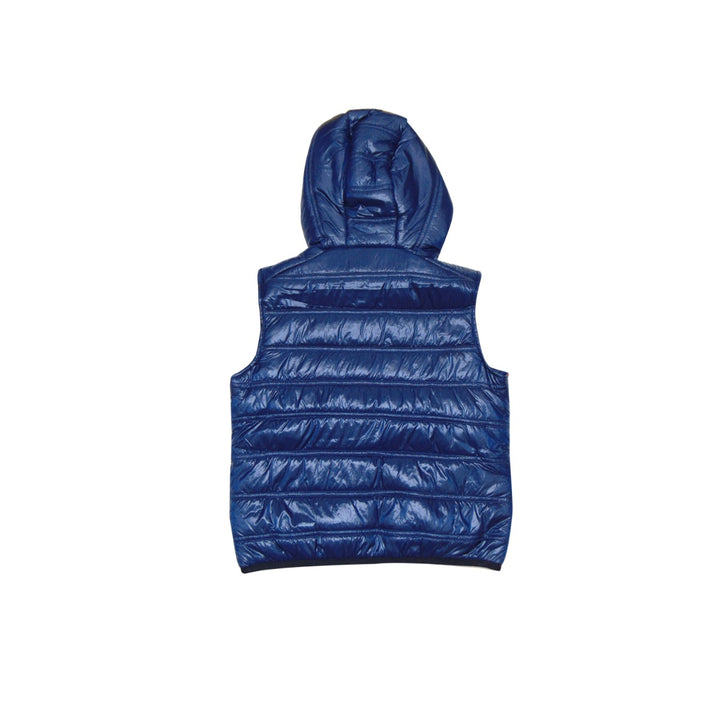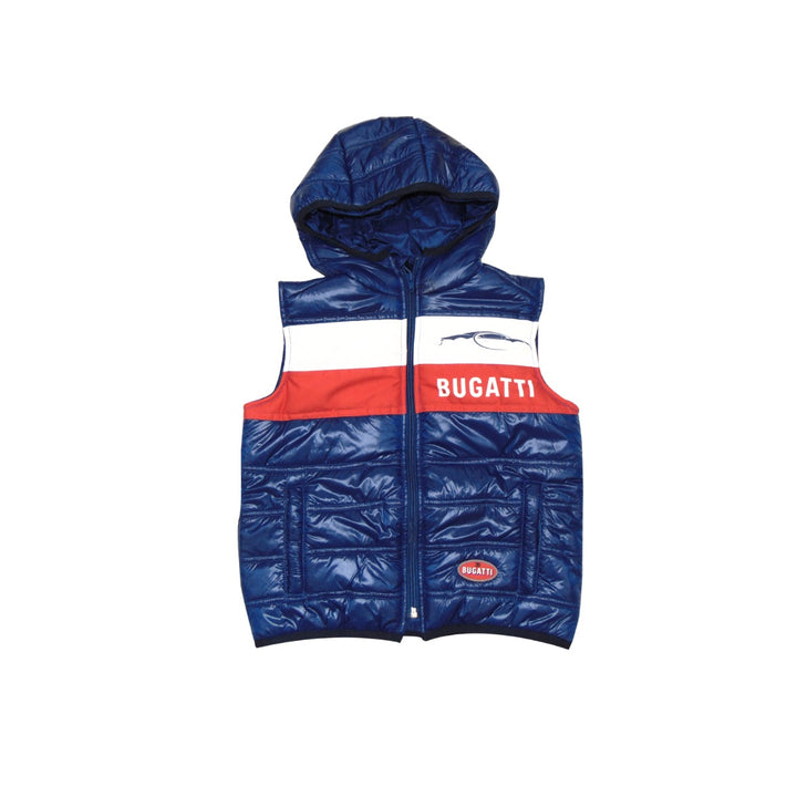 Perfect for the winters, this cut-sleeve blue jacket with a front open zipper & attached cap is a super stylish option to shop for your boy. The white and red stripe pattern on the front with Bugatti written on it is adding sporty feel to the jacket. Also, there are two front pockets and a brand logo patch near one of the pockets on the jacket. Shop it right here!