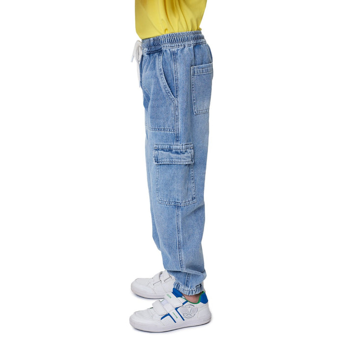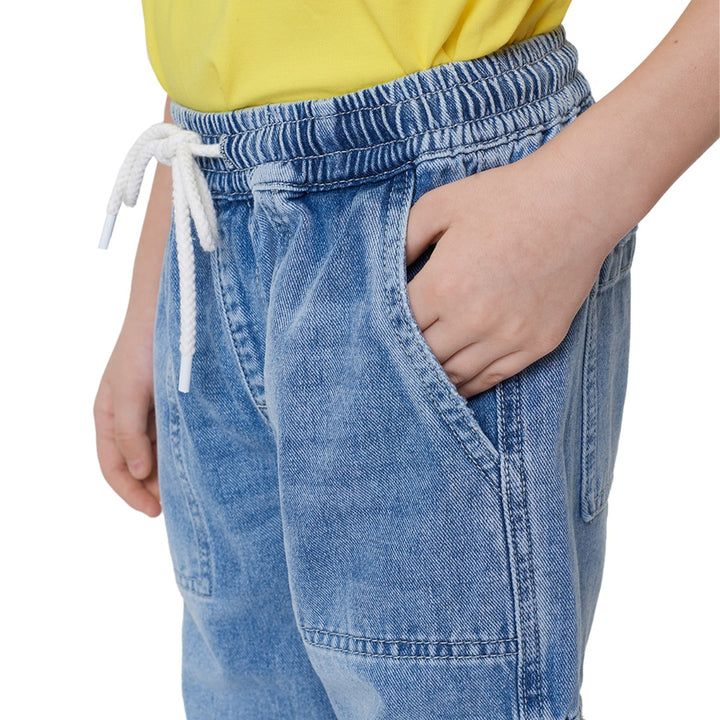 Give your little one an amazing experience as they wear these jeans. The secret is in the decorative stitch, which imitates the slots of the side pockets and the width line. In front of the belt, it carries two loops and a button, while in the back it exudes a soft elastic band. The edges of the legs end with lapels.