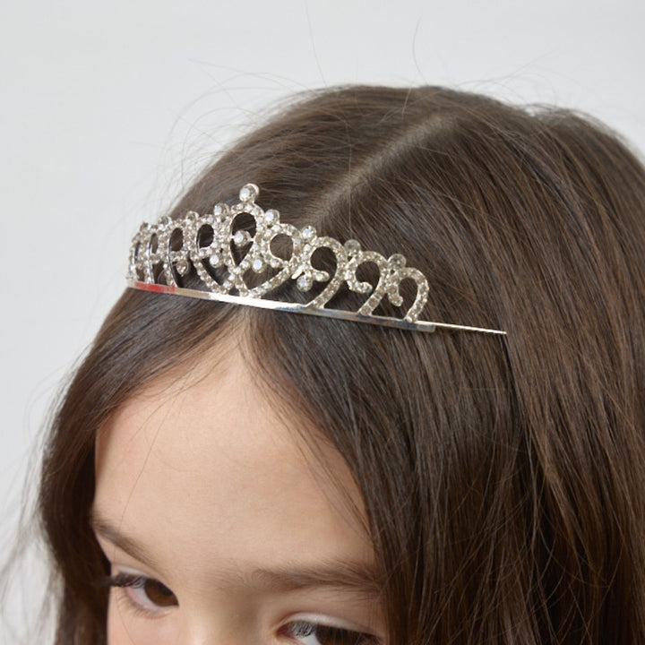 This exquisite silver tiara, adorned with sparkling crystals, is the perfect accessory for your little princess. Its elegant design adds a touch of sophistication to any special occasion, making her feel truly royal. Lightweight and comfortable, it complements delicate hairstyles with grace and charm.
