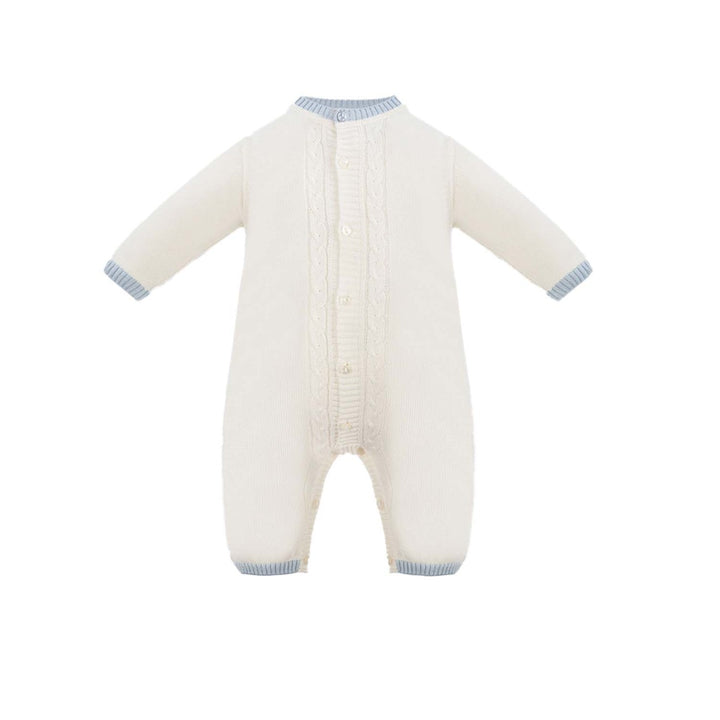 This exceptional set comprises a blanket, jumpsuit, hat, and booties, all skillfully made using delicate knitting techniques, resulting in a one-of-a-kind ensemble that offers both comfort and warmth.