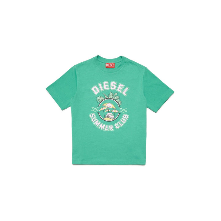 Oversized crew-neck, short-sleeved t-shirt with contrasting print on the front Diesel Summer Club. Made of 100% cotton.
