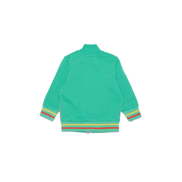 Two-coloured, long-sleeved, zipped sweatshirt with coloured knitted elastic cuffs and hem, Diesel 78 logo on the heart side and patch pockets on the front. Made of 100% cotton.