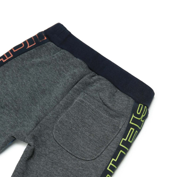 JoggJeans® denim and fleece jogger, with ribbing, side pockets and back pocket.
