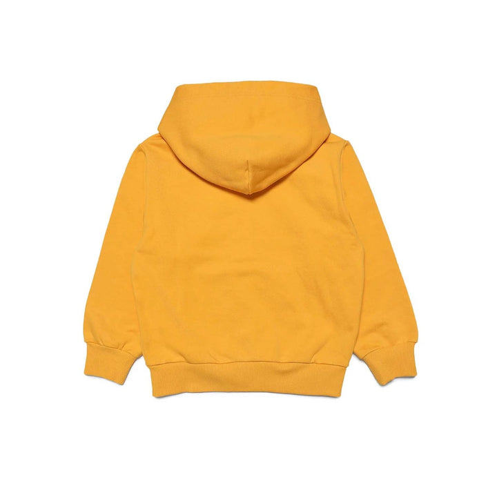 Yellow hooded sweatshirt with zip in French Terry cotton, long-sleeve, with oversized front pocket, cuffs with ribbed finish and colored logo patch print detail on front.