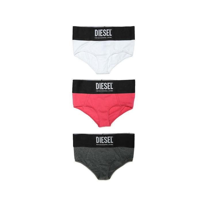 Set of three knickers of various colors made from soft stretch cotton. High elastic waistband decorated with contrast Diesel logo.