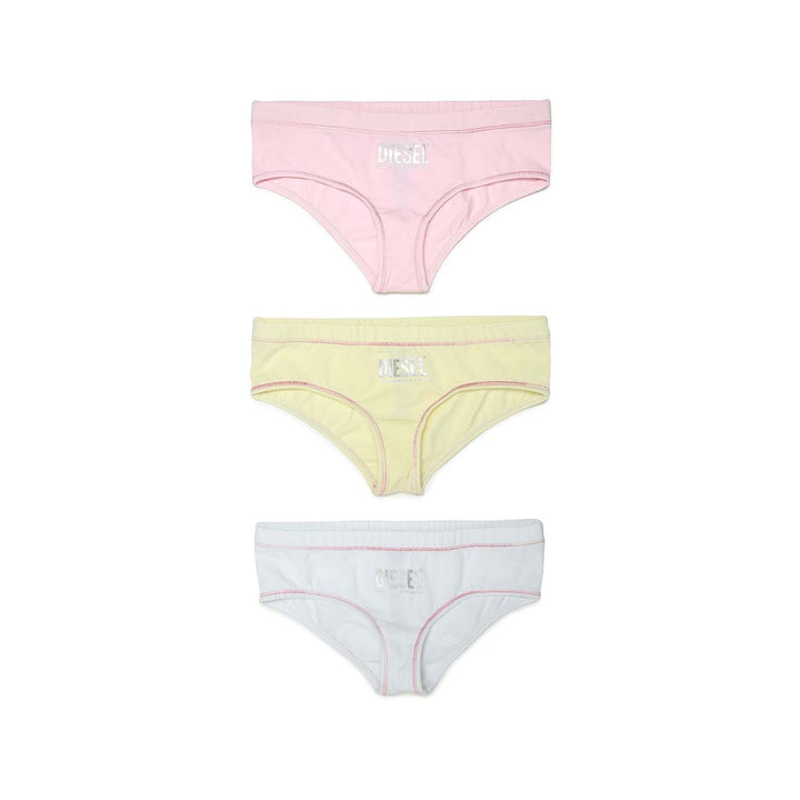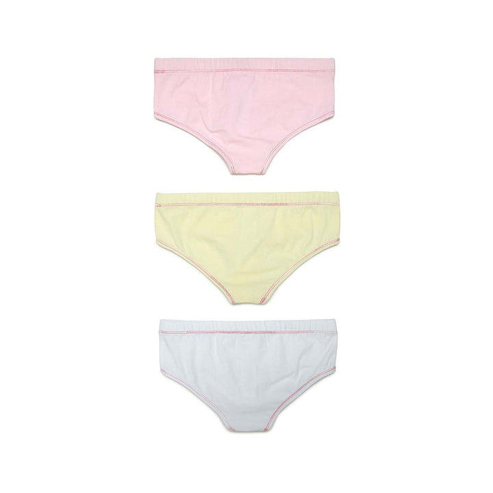 Set of three knickers of various colors made from soft stretch cotton with mylar logo and contrasting color stitching.