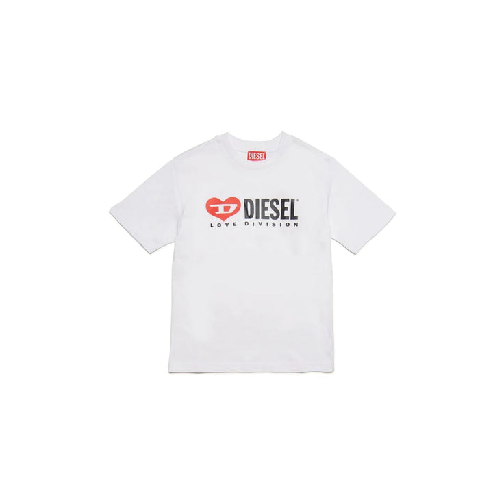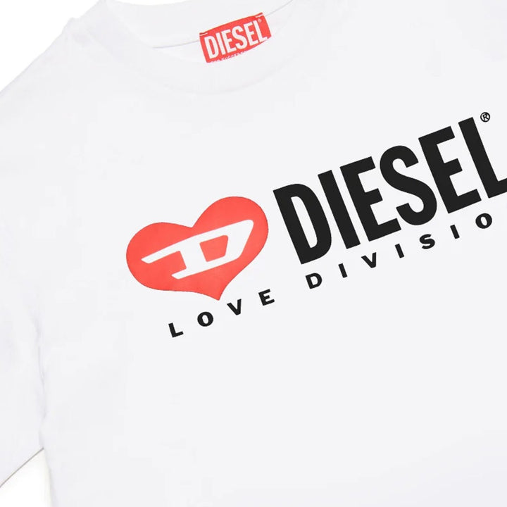 Crew-neck, short-sleeved t-shirt with Diesel Love Division logo on the front. The garment is part of Diesels D for Love capsule that celebrates love in all its forms.