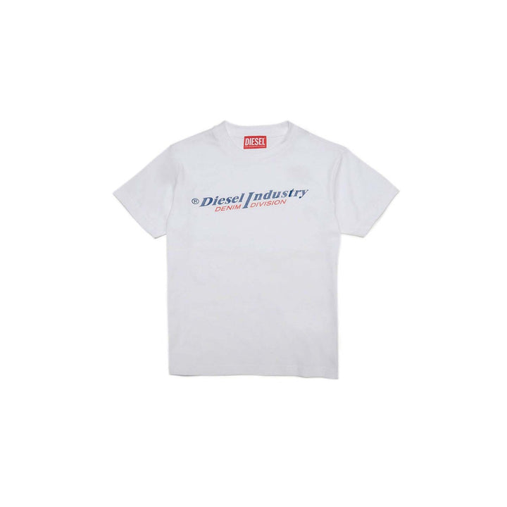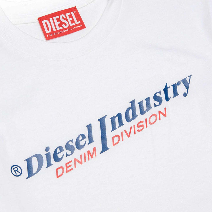 Crew-neck, short-sleeved t-shirt with 'Diesel industry, Denim Division' logo on the front. Made of 100% cotton.\