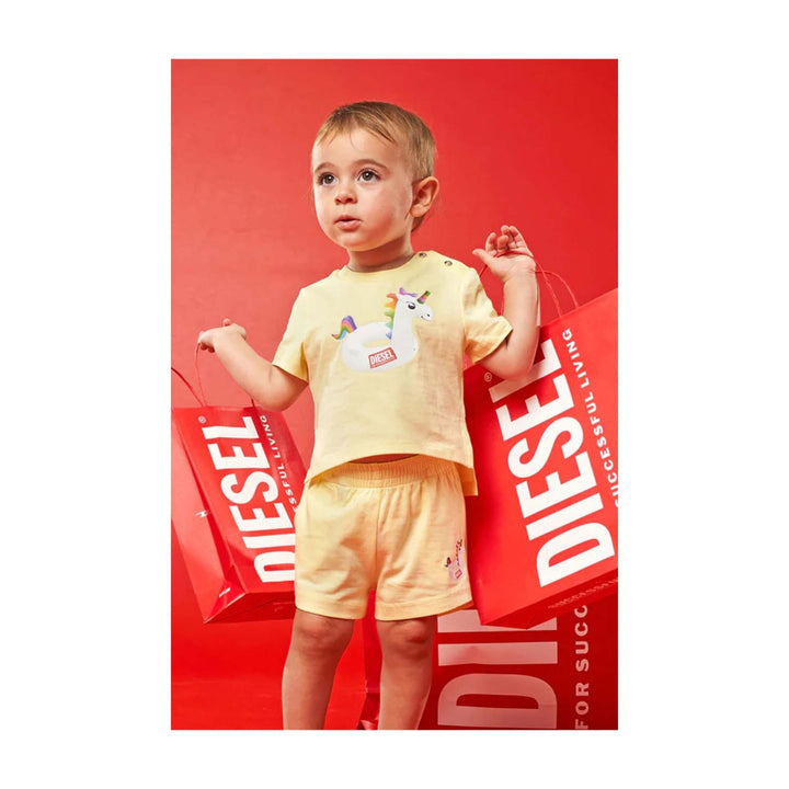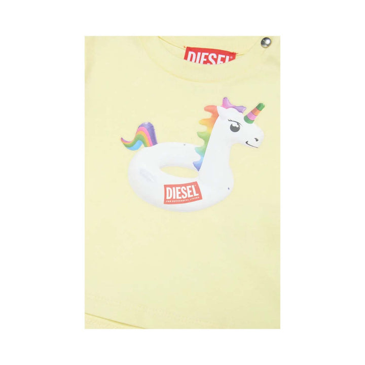 Yellow jersey beachwear T-shirt with unicorn print
