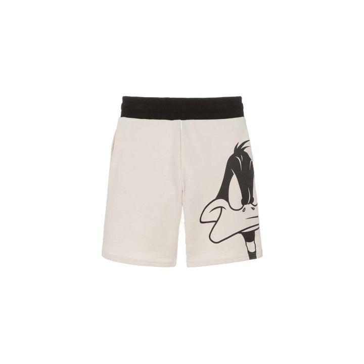 Cartoon-inspired light beige shorts for boys and girls, with Looney Tunes x DKNY printed on one leg to mark the collaboration. There is an oversized Daffy Duck character printed on the back for a cool, graphic look. Comfortable for everyday casual and lounging, they are made in soft cotton sweatshirt jersey in a relaxed fit, with a black ribbed drawstring waistband. There are discreet pockets on the side seams.