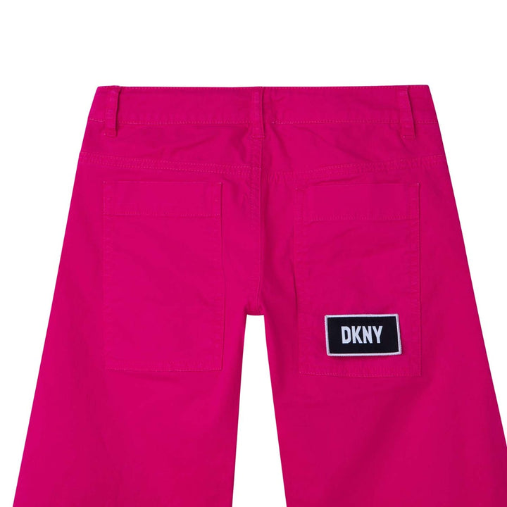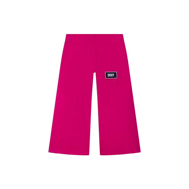 Logo-Wide-Pink-Trouser-For-Girls-by-DKNY.Made-from-soft-cotton-it-features-the-brands-logo-print-in-Pink-on-the-back