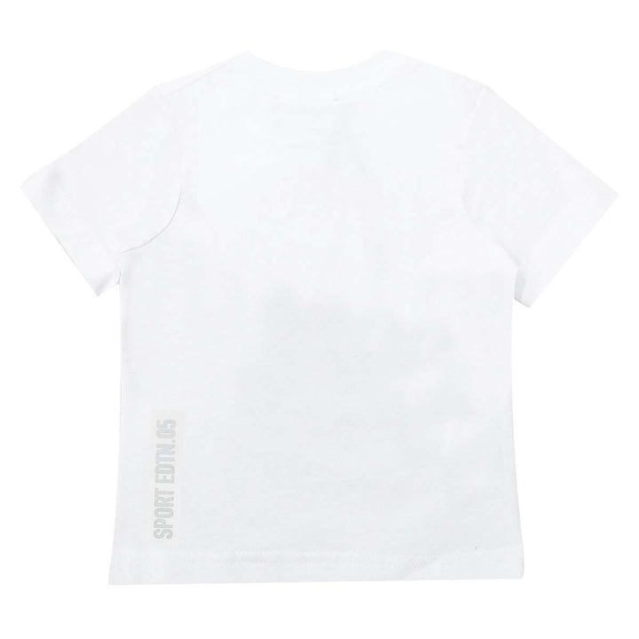 This classic white t-shirt with a red leaf logo print of DSQUARED2 is one of the most comforting and stylish t-shirts you can buy for your little one and style by pairing any stylish bottom wear like denim pants, shorts, and skirts, or even joggers. Along with the stylish leaf pattern logo print on the chest area, the t-shirt is supremely comfortable because of being designed with 100% cotton fabric and with two popper buttons on the shoulder for easy dressing.