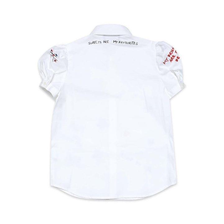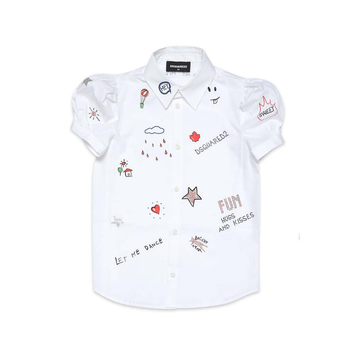 How about styling your little daughter in a printed white shirt like this one? Undeniably, this is one of the most stylish shirts by DSQUARED2 that you can buy right here. The shirt is trendy as it is designed with fun text and graphic prints all over and features stylish cuff sleeves and collar. Being crafted with the use of breathable cotton fabric, the shirt becomes a very comfortable option to style your baby girl with a denim skirt, pants, shorts, or any of her favorite bottom wear.