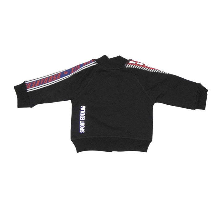 This Black Jacket for little boys by Dsquared2. Solid color with print Long sleeves Zipper closure French Terry lining Do not dry clean Wash at 30° c Do not bleach Do not tumble dry Iron at 110° c max black cotton logo print to the front classic hood front zip fastening long sleeves straight hem.
