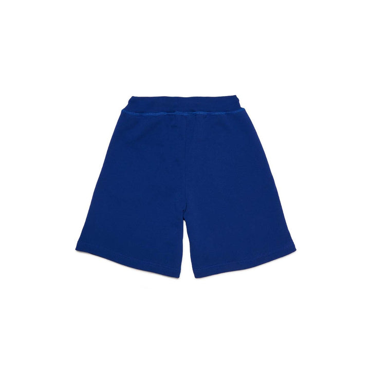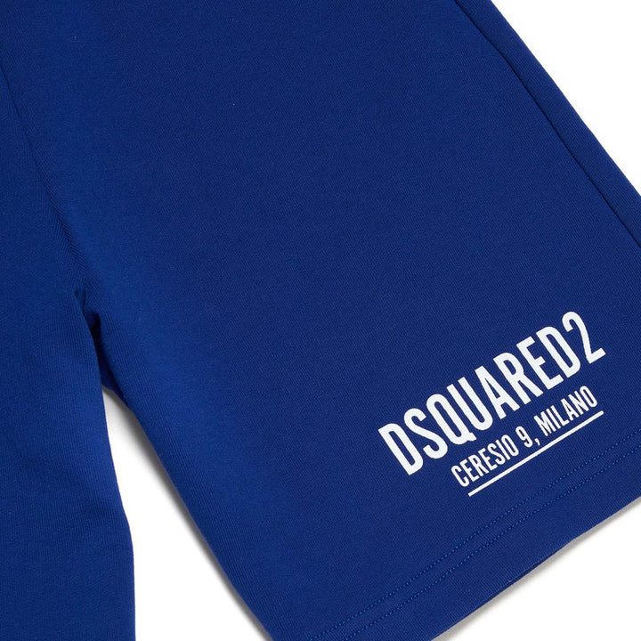 blue shorts unisex Dsquared2 Kids . Logo print on the front, elasticated drawstring waist, straight cut, two side welt pockets and above the knee height.