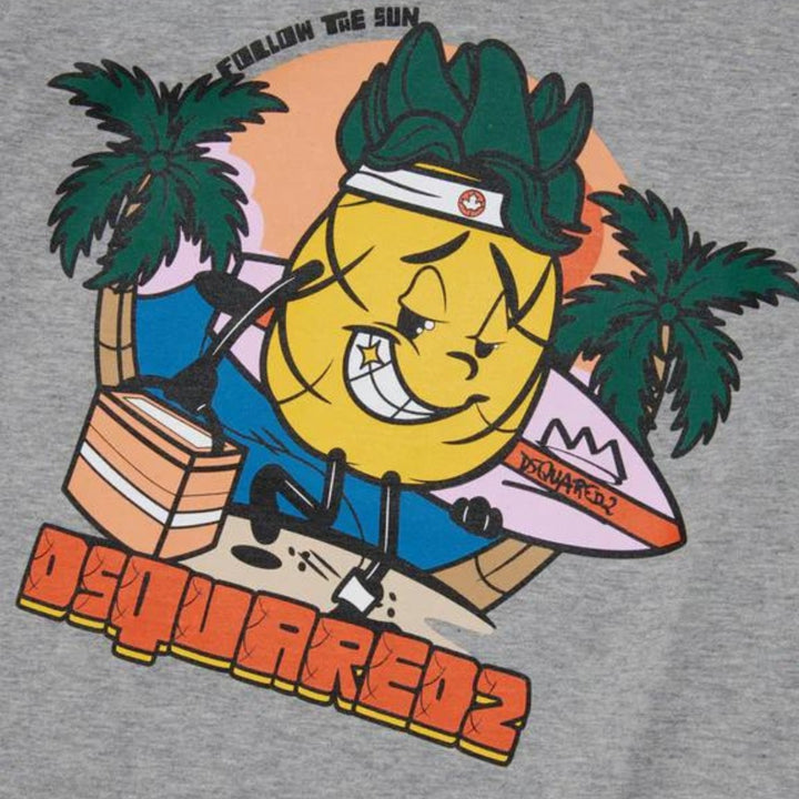 Short-sleeved crew-neck T-shirt in jersey. Relaxed, regular fitting. Features a special Follow the Sun graphic branded with Dsquared2 logo on the front. Made of 100% cotton. A garment designed for summer, ideal for everyday occasions