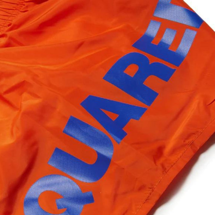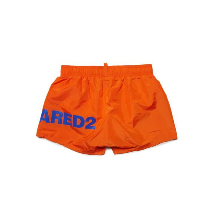 Polyester boxer swim shorts. Mid-length. Drawstring waist. Features a contrasting color Dsquared2 logo that hugs the garment starting at the front and ending at the back. A cool option for summer occasions.
