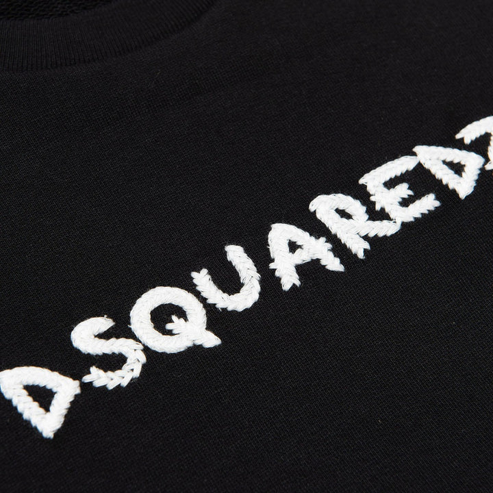 Girls Black Logo Print Dress From Dsquared2, This Garment Is Part Of The Ss23 Collection , logo print to the front And Made By Soft Cotton.