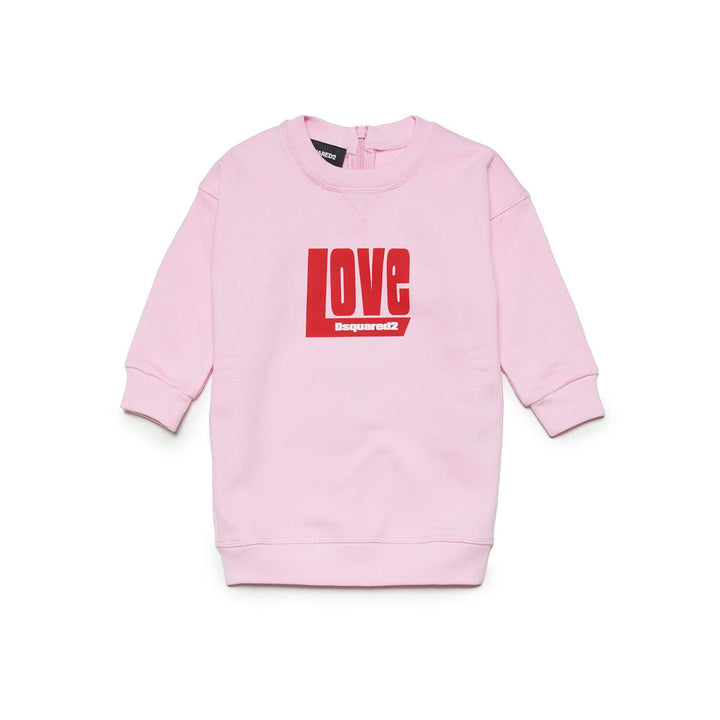 Dsquared2 Kids' dress riffs on the brand's sweatshirts. Subtly defined with a ribbed hem and cuffs, this light-pink iteration is detailed with the word 'love' at the chest and the label's signature.