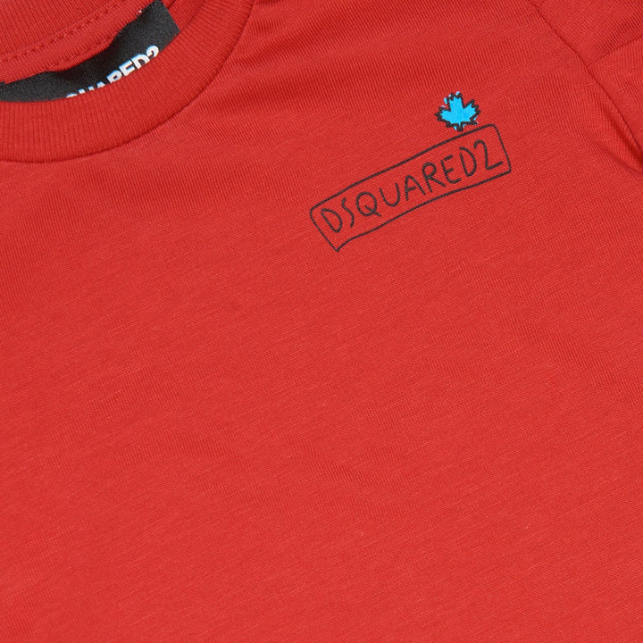 Red Logo-Embroidered T-Shirt From Dsquared2 Kids Featuring Cotton, Embroidered Logo At The Chest, Round Neck, Balloon Sleeves, Straight Hem.